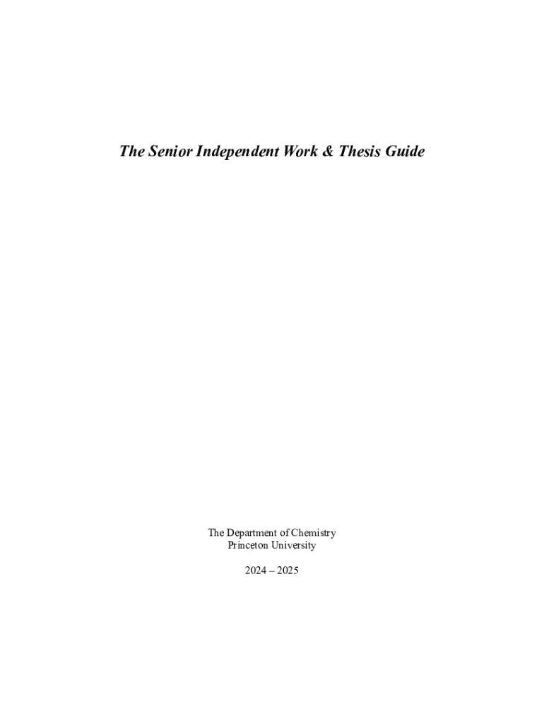 Get the free Senior Independent Work & Thesis Guide - chemistry princeton