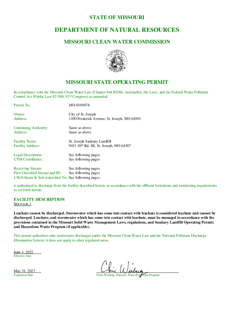 Get the free Draft Missouri State Operating Permit MO0055034, July 26 ...