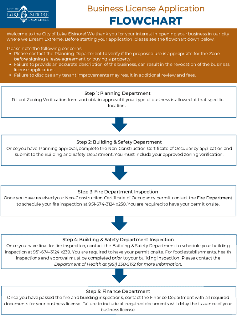 Business License ApplicationFLOWCHART Welcome to the City of Lake Elsinore! We thank you for your interest in opening your business in our city where we Dream Extreme. Before starting your application,