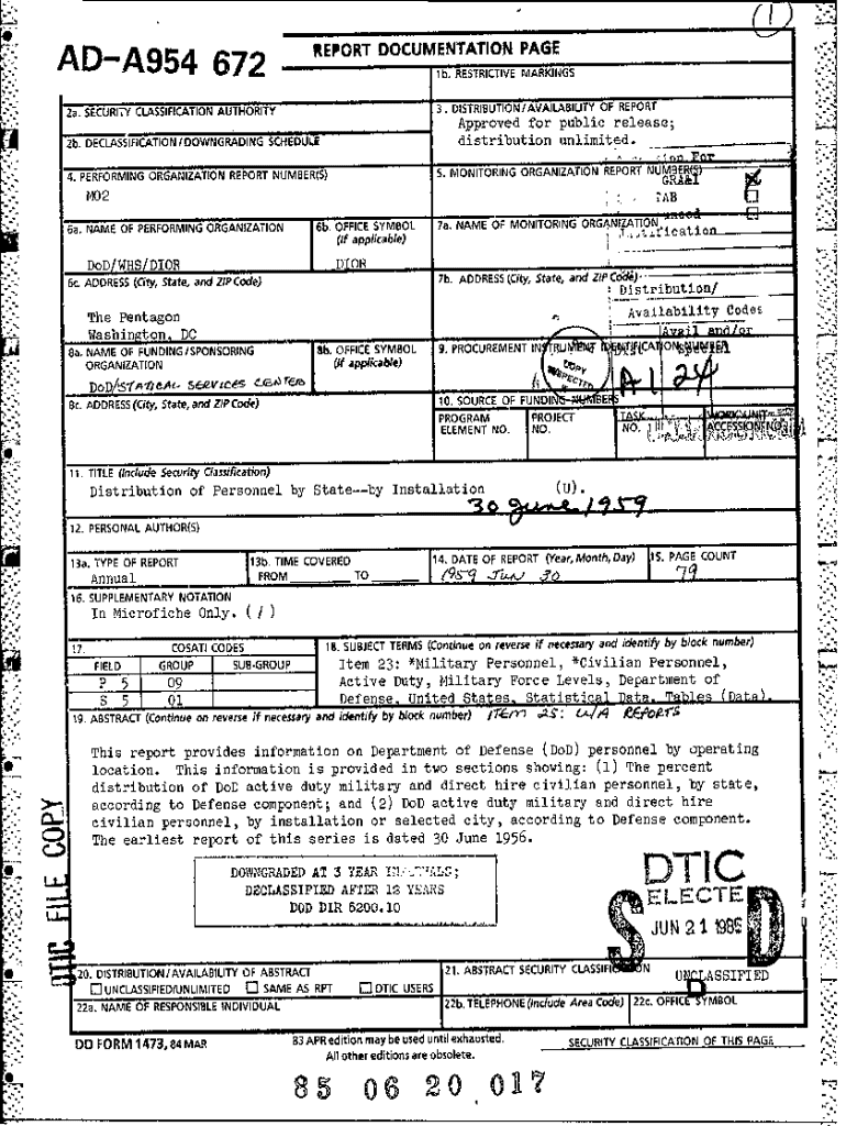 (I REP\'ORT DOCUMENTATION PAGEADA954 6721b. RESTRICTIVE MARKllGS 3. DISTRIBUTION/AVAILABILITY OF REPORT2a. SECURliY CLASSIFICATION AUTHORITYApproved for public release; distribu tion unlimite d.2b.