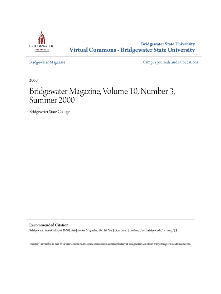Bridgewater State UniversityVirtual Commons Bridgewater State University Bridgewater MagazineCampus Journals and Publications2000Bridgewater Magazine, Volume 10, Number 3, Summer 2000 Bridgewater