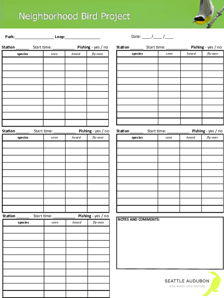 Park:___ Loop:___ Station ___ Start time: ___ Pishing yes / no speciesStation ___ speciesseenheardflyoverStart time: ___ Pishing yes / no seenheardflyoverStation ___ Start time: ___ Pishing yes /
