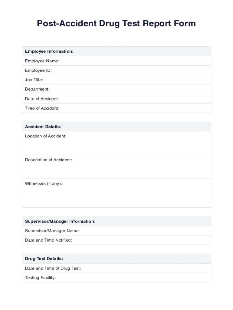 Post-Accident Drug Test Report is not the form you're looking for?Search for another form here.