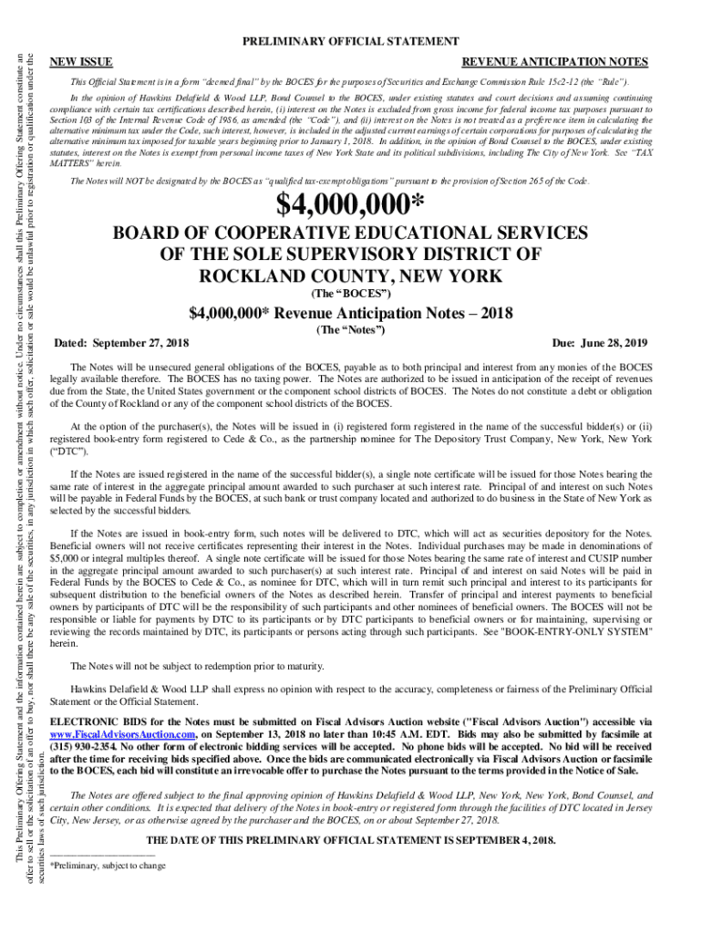 This Preliminary Offering Statement and the information contained herein are subject to completion or amendment without notice. Under no circumstances shall this Preliminary Offering Statement constitute