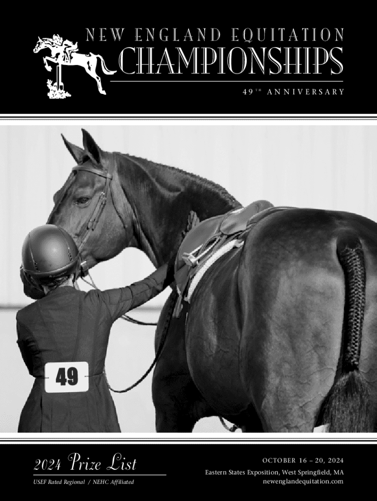NEW ENGLAND EQUITATIONCHAMPIONSHIPS 49T HAN N IVERSARY492024 Prize List USEF Rated Regional / NEHC AffiliatedOCTOBER 16 20, 2024 Eastern States Exposition, West Springfield, MA newenglandequitation.com49