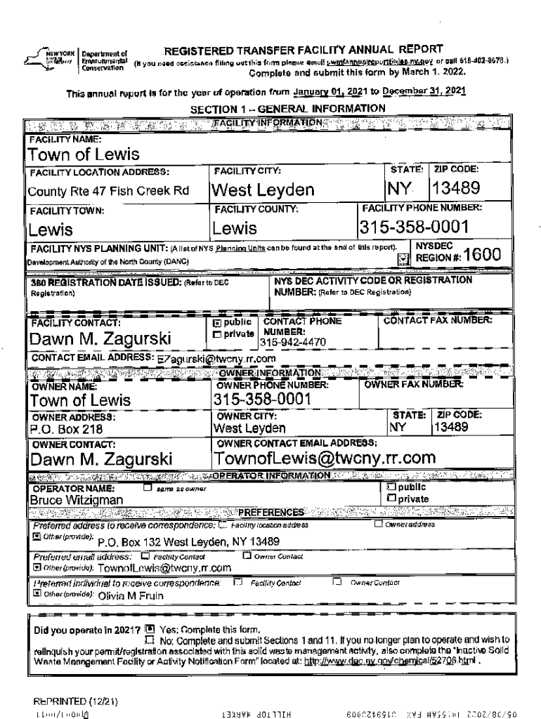 4WYORK%t11rvIOapartmontof Environmental ConHrvatlonREGISTERED TRANSFER FACILITY ANNUAL REPORT (lfyau need as?.iii!lta.nce fllllng outthb; form please email 5wmfa:nnualrcport@d9c.ny.gov or call 6184028678.)Complete