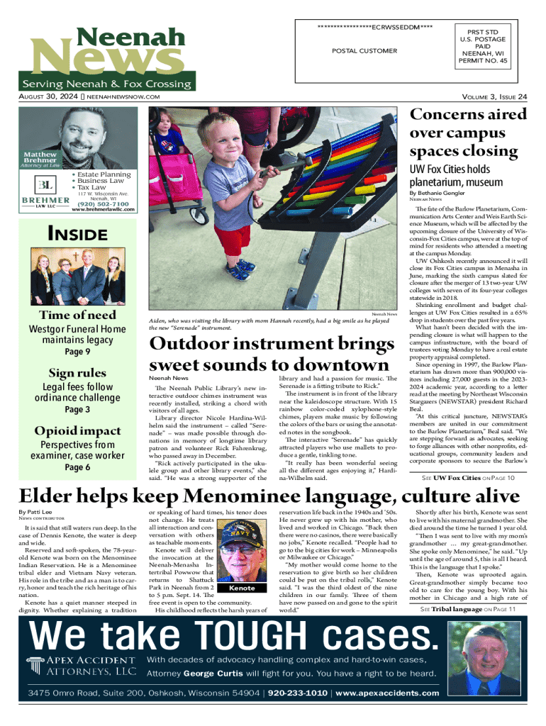 NeenahNews*****************ECRWSSEDDM****POSTAL CUSTOMERPRST STD U.S. POSTAGE PAID NEENAH, WI PERMIT NO. 45Serving Neenah & Fox Crossing August 30, 2024 x neenahnewsnow.comVolume 3, Issue 24Concerns