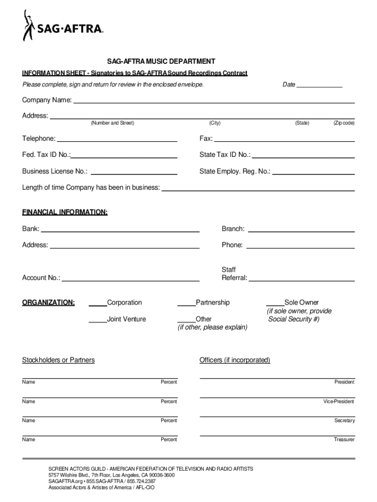 Get the free Sag-aftra Sound Recordings Contract Information Sheet