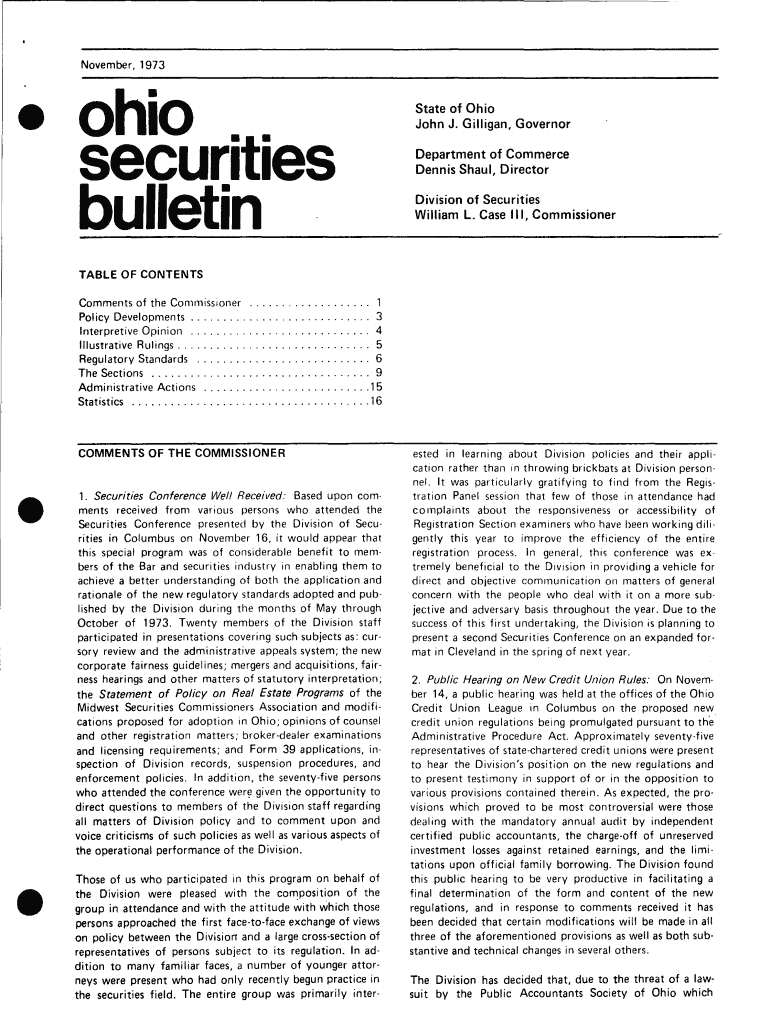 Get the free November, 1973 ohio securities bulletin TABLE OF CONTENTS ... - com ohio