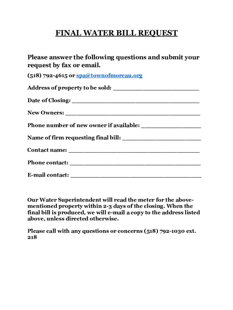 Get the free Final Water Bill Request