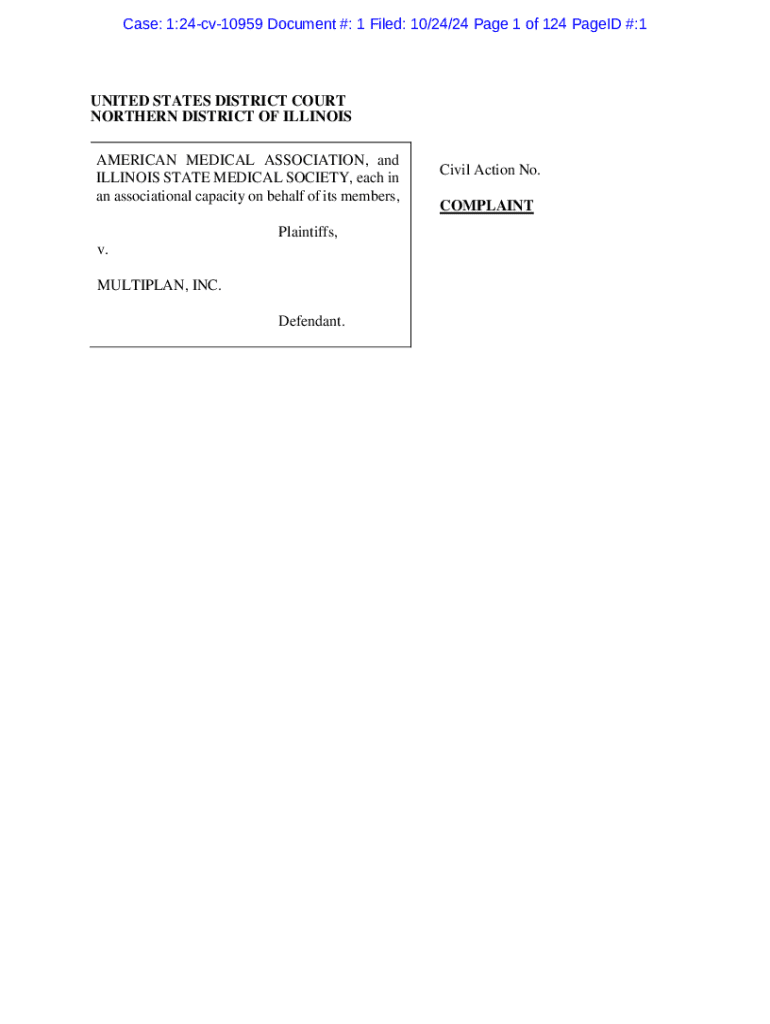 Case: 1:24cv10959 Document #: 1 Filed: 10/24/24 Page 1 of 124 PageID #:1UNITED STATES DISTRICT COURT NORTHERN DISTRICT OF ILLINOIS AMERICAN MEDICAL ASSOCIATION, and ILLINOIS STATE MEDICAL SOCIETY,