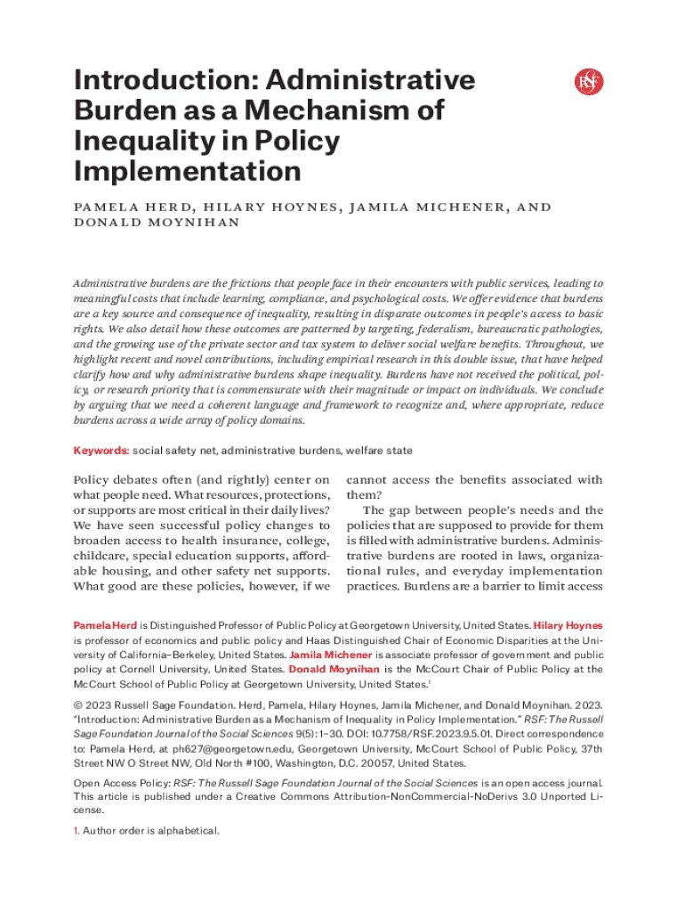 Get the free Administrative Burden as a Mechanism of Inequality in ...