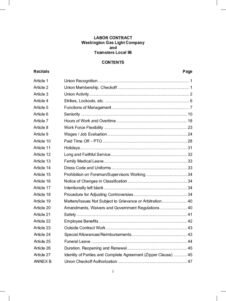 Get the free i LABOR CONTRACT Washington Gas Light Company and ...