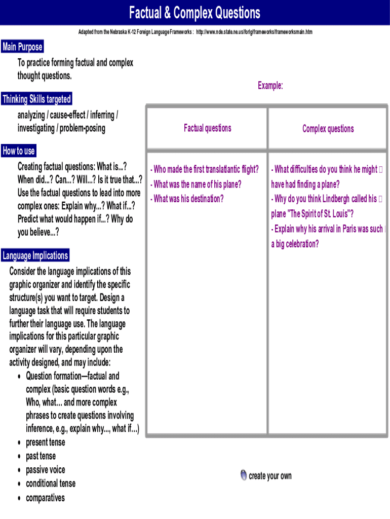 Get the free Factual & Complex Questions