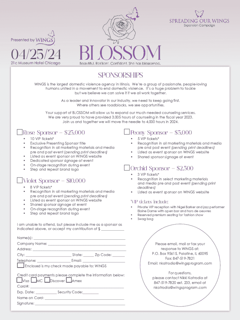 Presented by04/25/24 21c Museum Hotel ChicagoSPONSORSHIPS WINGS is the largest domestic violence agency in Illinois. Were a group of passionate, peopleloving humans united in a movement to end domestic