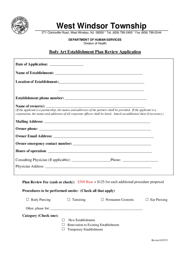 Get the free Body Art Establishment Plan Review Application
