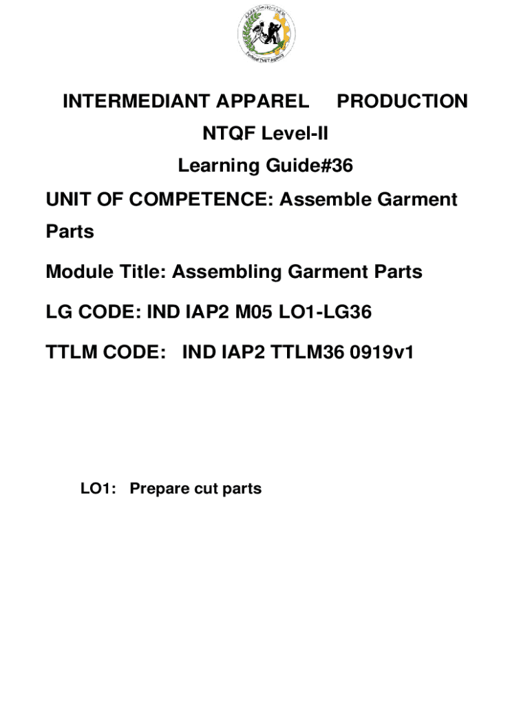 This learning guide provides information on assembling garment parts, including preparing, pressing, and pinning cut parts together as well as preparing accessories for garment design. It aims to assist learners in achieving their learning outcomes related to garment assembly as per specified designs.