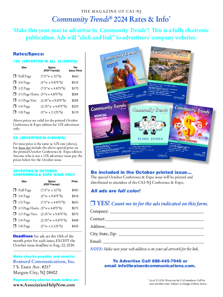 THE MAGAZINE OF CAINJCommunity Trends 2024 Rates & Info* Make this your year to advertise in Community Trends! This is a fully electronic publication. Ads will click and link to advertisers company