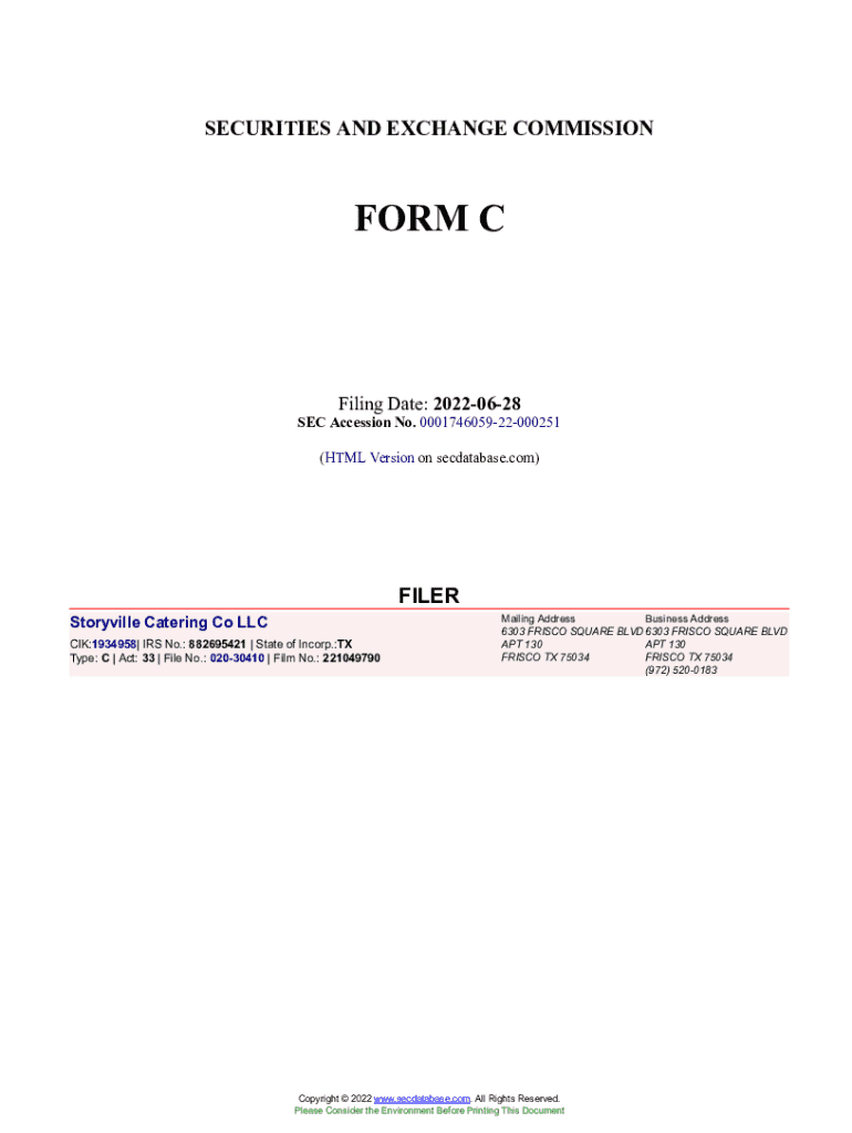 Get the free Storyville Catering Co LLC Form C Filed 2022-06-28. Accession Number