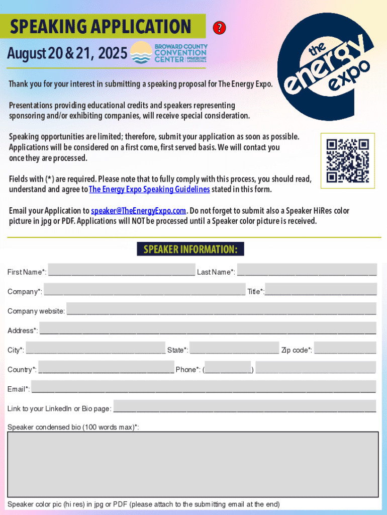 Get the free The Energy Expo 2025 - Speaking Application. Speaking Application