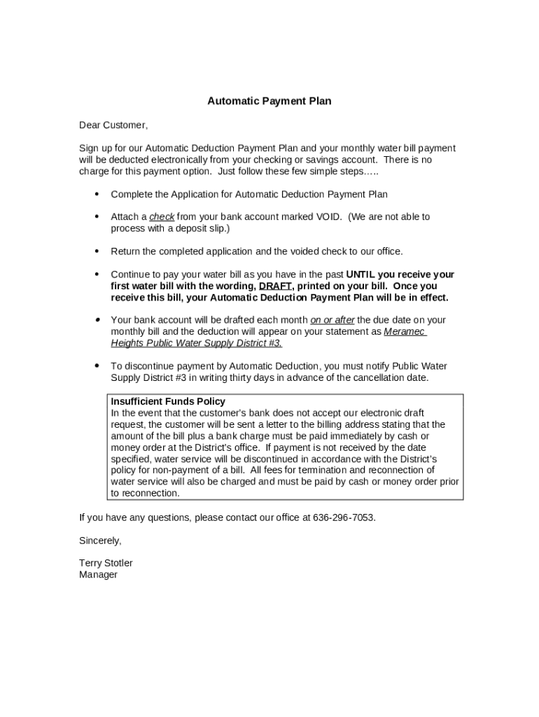 Automatic Deduction Payment Plan Application template instructions