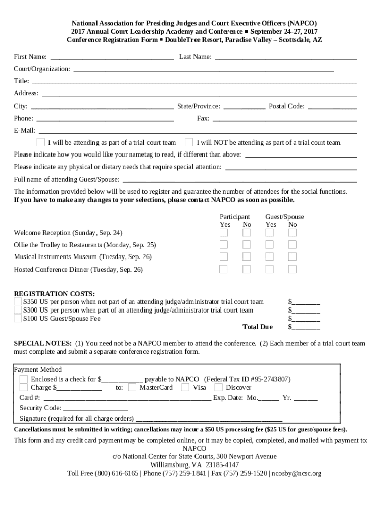 Instructions for the Judge John J. Russo Chairs NAPCO Conference form