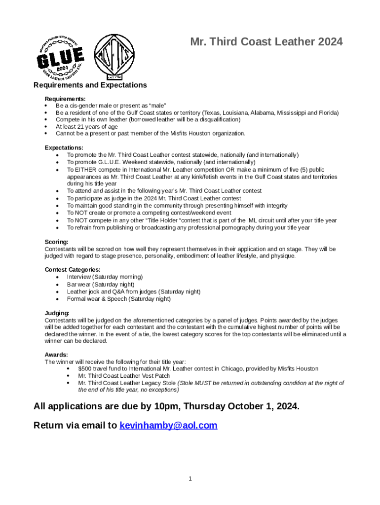 Instructions for the form 2025-Mr-Third-Coast-Leather-Contestant-Application. ...