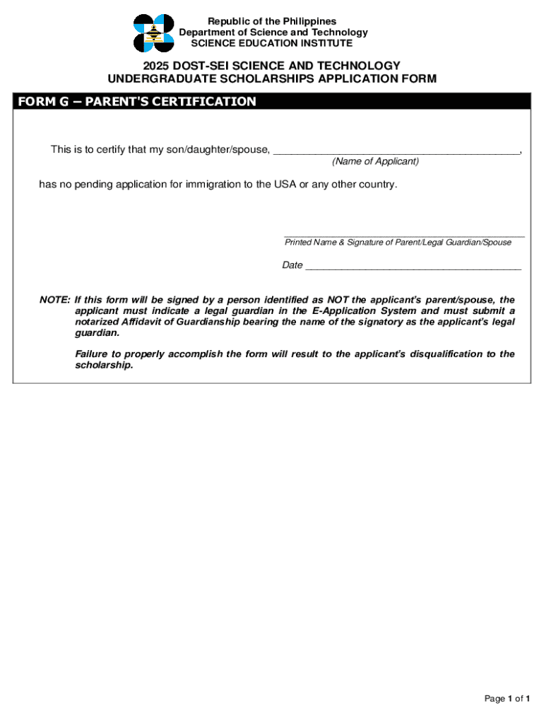 Get the free Form G – Parent's Certification