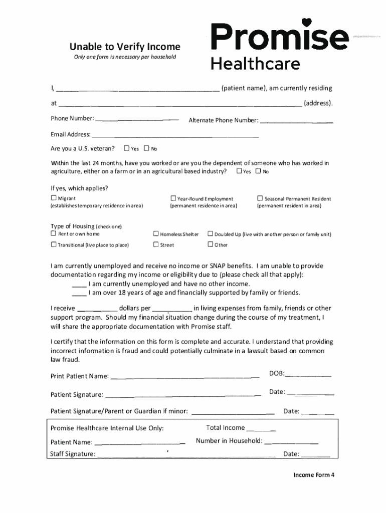 To fill out unable to verify income, individuals must complete the designated form, detailing their income sources and any attempts made to gather the necessary documentation.