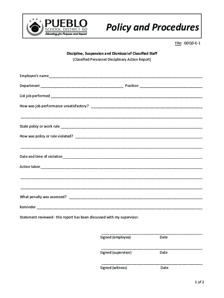 Get the free GDQDE-1 Discipline Suspension and Dismissal of Classified Staff