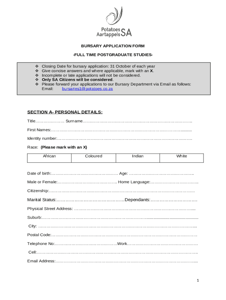Frequently asked questions about the form Bursary Application
