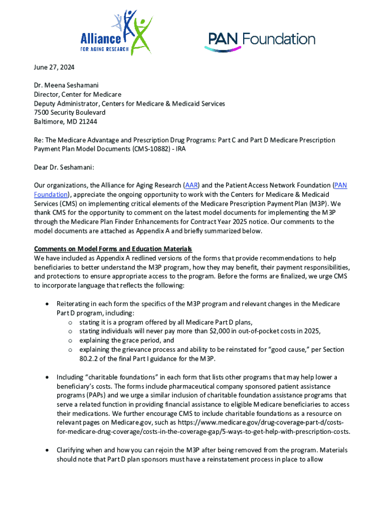 June 27, 2024 Dr. Meena Seshamani Director, Center for Medicare Deputy Administrator, Centers for Medicare & Medicaid Services 7500 Security Boulevard Baltimore, MD 21244 Re: The Medicare Advantage