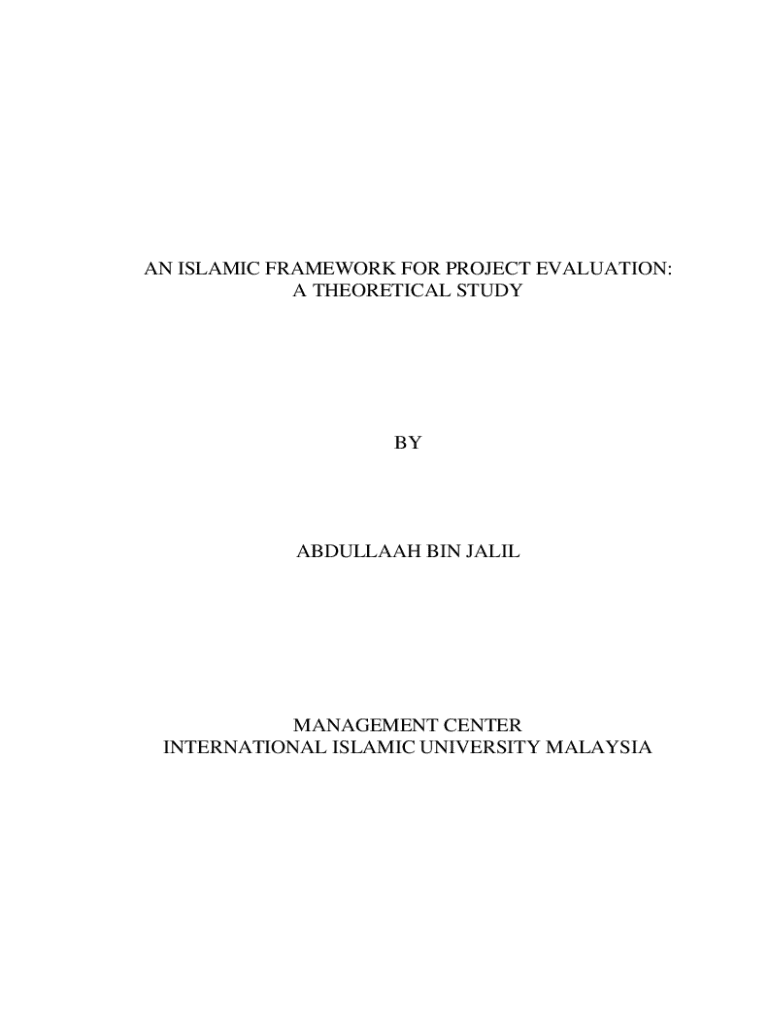 This document presents a theoretical study exploring an Islamic framework for project evaluation, addressing its principles and distinguishing it from mainstream frameworks. It emphasizes the importance of Shari‘ah objectives and Islamic values in decision-making related to project appraisal.