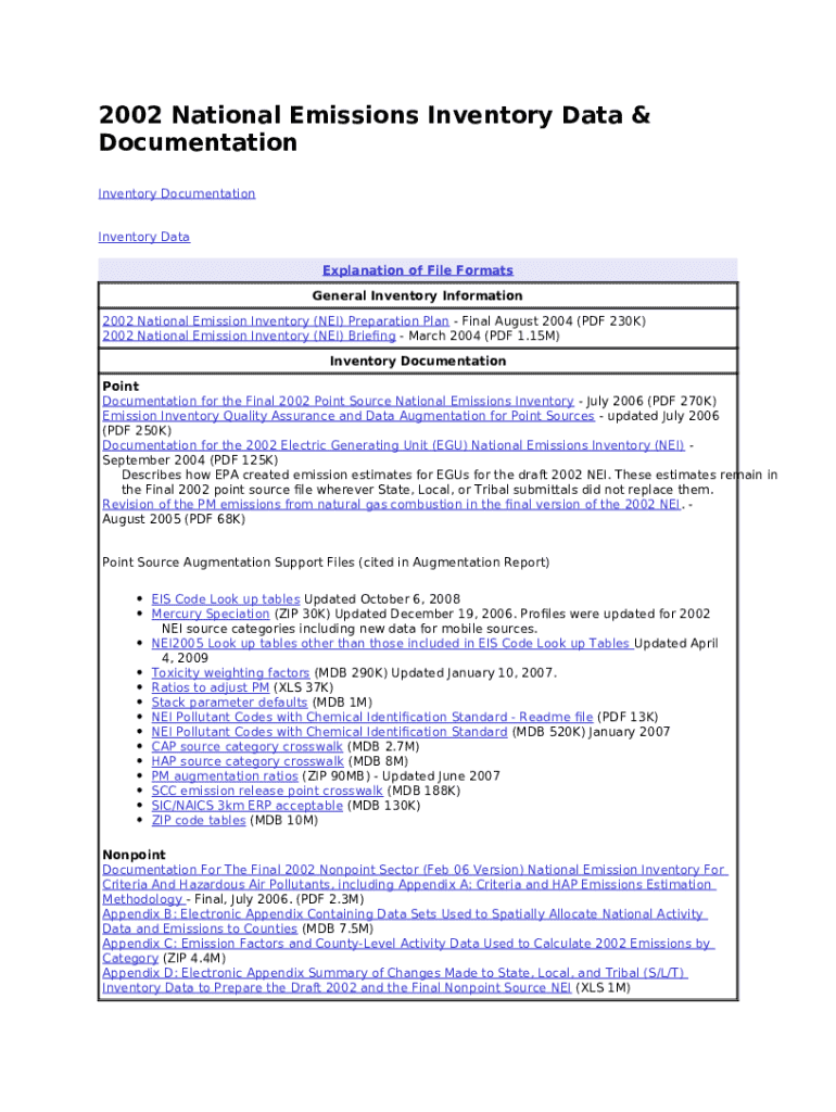 Instructions for the 2002 National Emissions Inventory Data & Documentation form