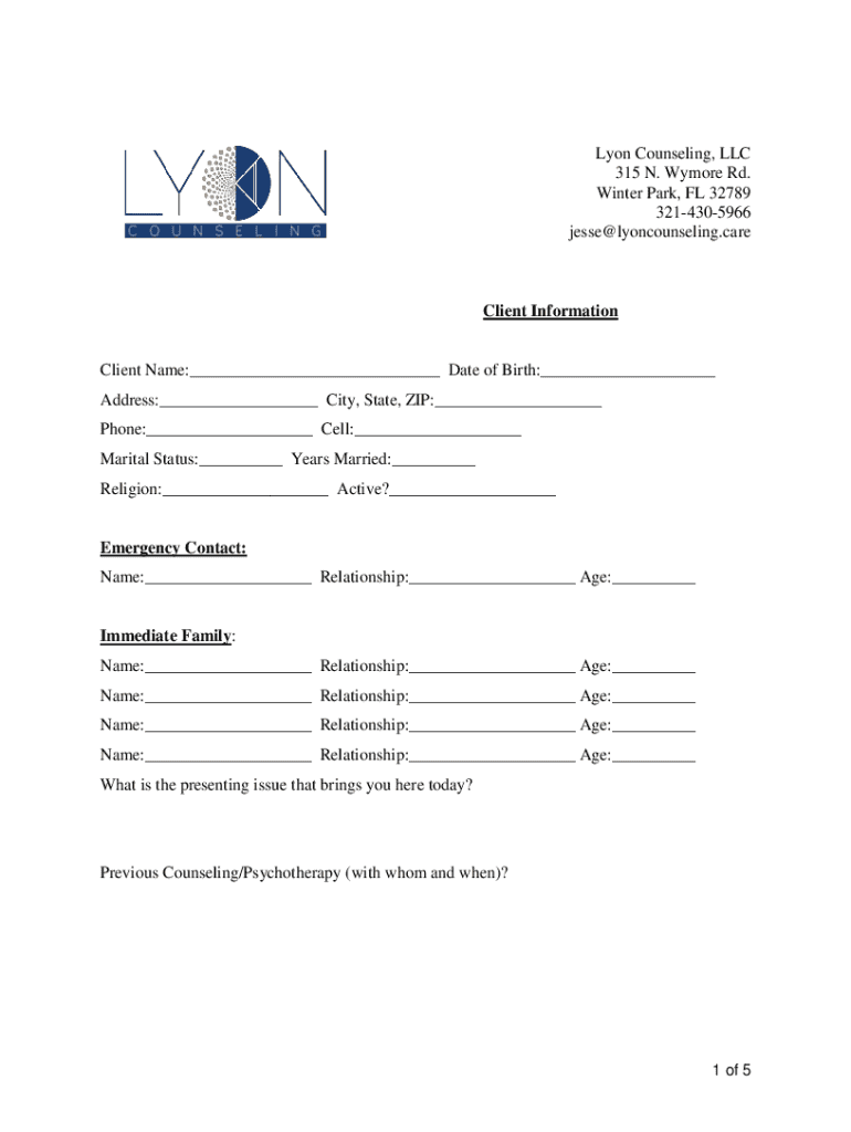 Lyon Counseling Client Information is not the form you're looking for?Search for another form here.