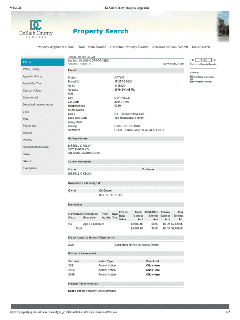 9/1/2021DeKalb County Property Appraisal Property Appraisal HomeProfileReal Estate SearchParcelAppeals HistoryStatus Parcel ID Alt ID Address Unit City Zip Code Neighborhood Super NBHD Class Land