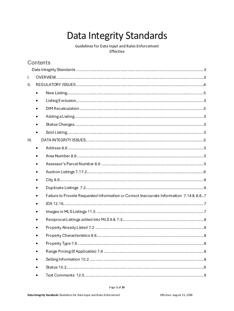 Data Integrity Standards Guidelines for Data Input and Rules Enforcement EffectiveContents Data Integrity Standards ...........................................................................................................3