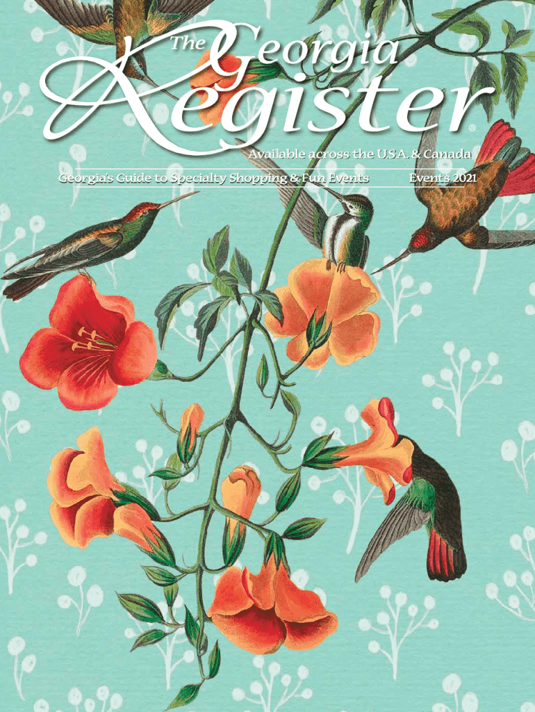 The Georgia Register provides insights into specialty shopping, local events, and unique experiences across Georgia. This issue highlights various events, craft shops, and notable attractions in Lexington, along with recipes and features from local authors.