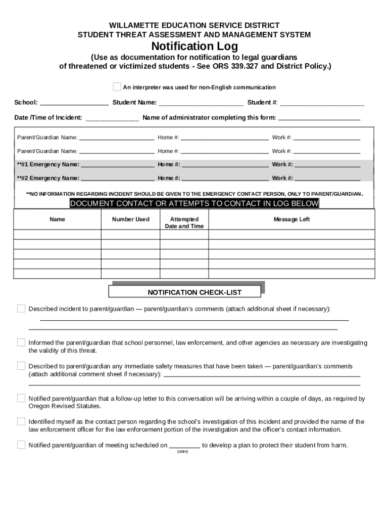 What is Notification Log - Willamette Education Service District Form?