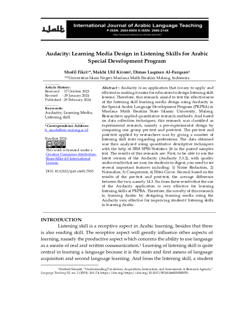 Get the free Audacity: Learning Media Design in Listening Skills for Arabic ...