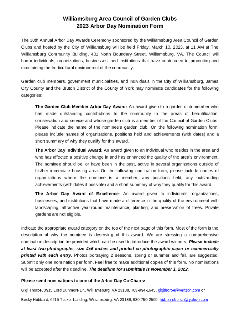 The arbor-day-2023-nom.--1 is a Word document which can be filled-out and signed for certain purpose. Then, it is furnished to the relevant addressee to provide certain info of certain kinds. The completion and signing may be done manually in hard copy or via a trusted solution e. g. PDFfiller. These services help to fill out any PDF or Word file without printing them out. It also lets you customize it according to your needs and put a valid digital signature. Upon finishing, the user sends the arbor-day-2023-nom.--1 to the respective recipient or several recipients by email or fax. PDFfiller has a feature and options that make your Word form printable. It offers various options when printing out appearance. It does no matter how you will file a form after filling it out - physically or electronically - it will always look well-designed and organized. To not to create a new file from the beginning every time, make the original document as a template. Later, you will have a customizable sample.