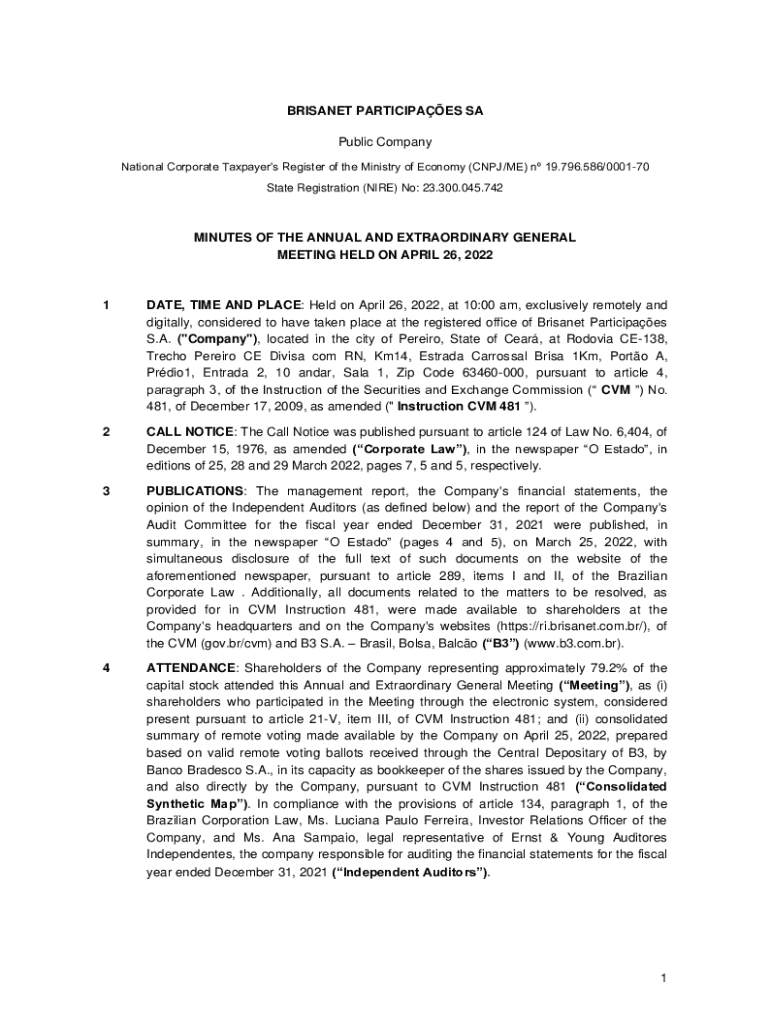 To fill out Brisanet Participaes SA Corporate filings, you need to follow the guidelines provided by the Brazilian Securities Commission (CVM), ensuring all financial data, disclosures, and corporate governance details are accurately completed.