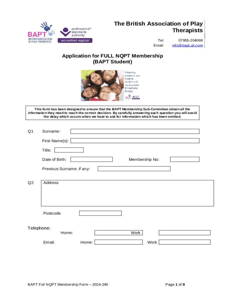 Template Application for FULL NQPT Membership (BAPT Student) instructions