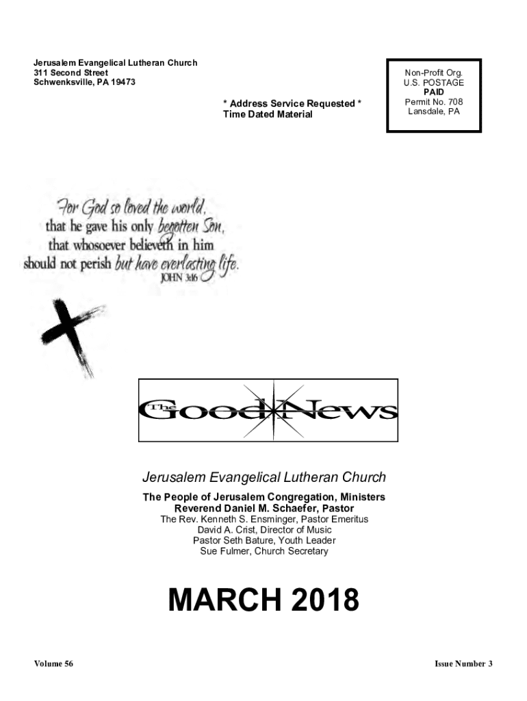 Jerusalem Evangelical Lutheran Church 311 Second Street Schwenksville, PA 19473* Address Service Requested * Time Dated MaterialNonProfit Org. U.S. POSTAGE PAID Permit No. 708 Lansdale, PAJerusalem