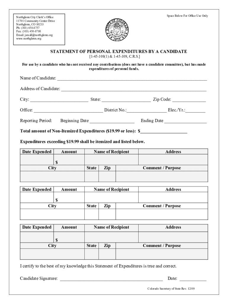 Space Below For Office Use OnlyNorthglenn City Clerks Office 11701 Community Center Drive Northglenn, CO 80233 Ph: (303) 4508757 Fax: (303) 4508798 Email: jsmall@northglenn.org www.northglenn.orgSTATEMENT