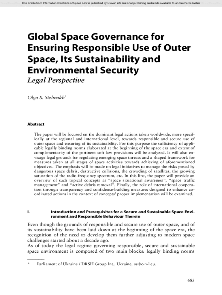 This article from International Institute of Space Law is published by Eleven international publishing and made available to anonieme bezoekerGlobal Space Governance for Ensuring Responsible Use of