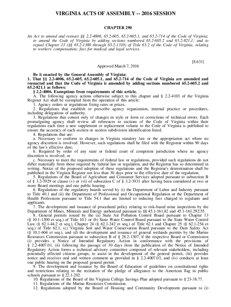 VIRGINIA ACTS OF ASSEMBLY 2016 SESSION CHAPTER 290 An Act to amend and reenact 2.24006, 65.2605, 65.2605.1, and 65.2714 of the Code of Virginia; to amend the Code of Virginia by adding sections numbered
