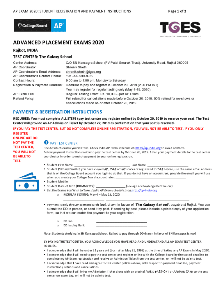Get the free Ap Exam 2020 Registration Instructions