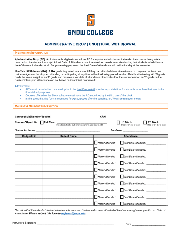 To fill out an administrative drop or unofficial drop form, students or faculty need to provide personal details, course information, reasons for the drop, and submit it to the appropriate administrative office, often with required signatures.