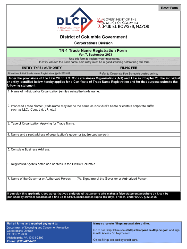 Get the free Tn-1 Trade Name Registration Form